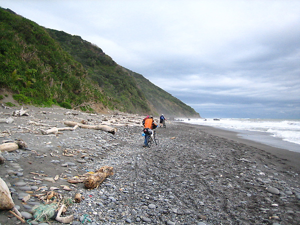 我們沿著海邊的南田石牽著車起起伏伏的走