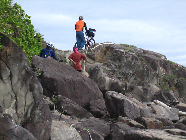 然後就遇到第一個要扛車的岩石坡 看到繩子就表示連只有人上都不好上了