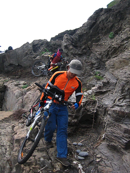 接下來的下坡我們女生完全使不上力 一定要把車扛在身上才有辦法