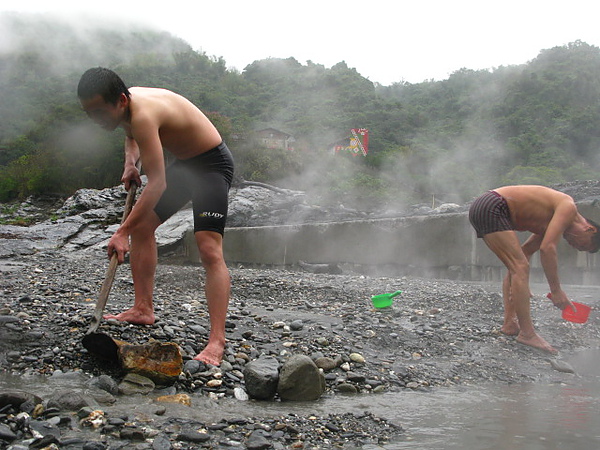 我們則負責把石頭搬開 讓冷水可以流進去調降水溫