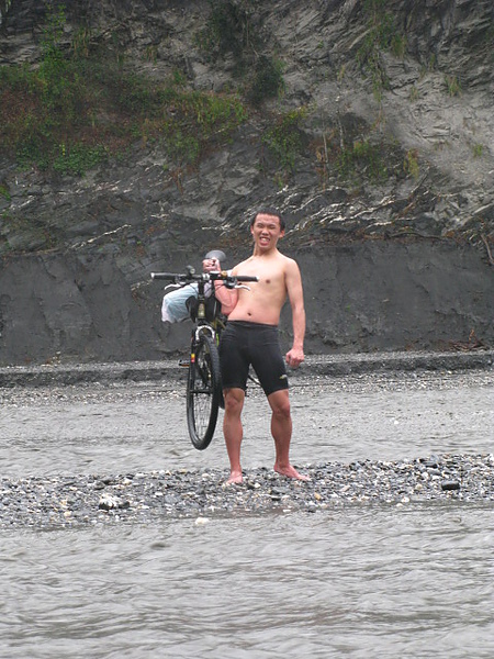 泡到一半居然有車友扛著腳踏車下來 太屌了